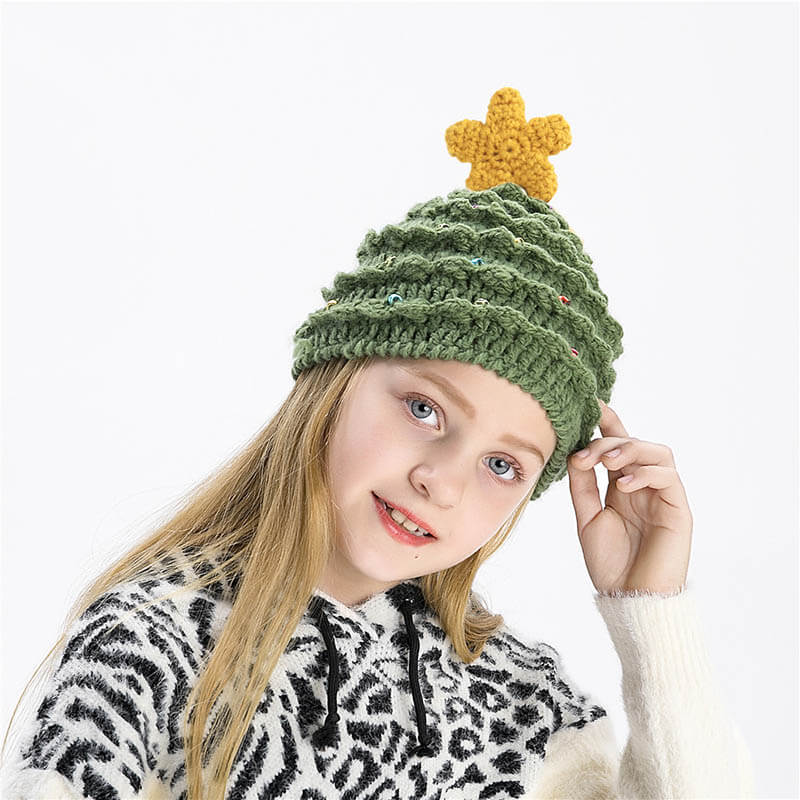 A cute Christmas tree knitted hat! Very comfortable Stretch Fabric.Parents, kids and couples can wear it together.Knitted hats keep warm in winter and have a cute Christmas tree shape.
