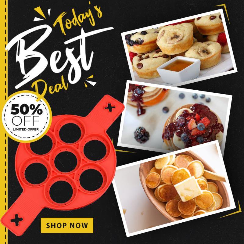 Flip Cooker - the fast, easy and fun way to make perfect pancakes every time! The Flip Cooker flips multiple pancakes at the same time and without the mess. Just place in preheated pan add batter and let them brown then simply lift and flip. The secret is the non-stick, silicone ring. The side holds the batter to the perfect shape for even cooking, while the flat bottom ring supports everything. Stovetop safe silicone while the easy flip grips keep hand away from the heat. Dishwasher safe. Also great for eggs, omelets, hash browns and so much more!