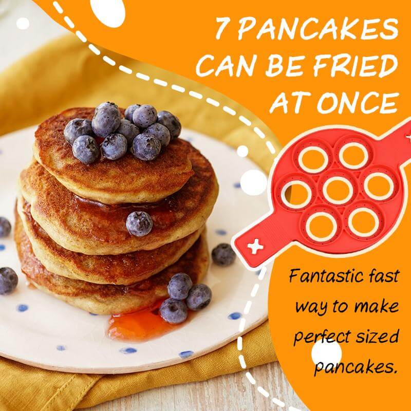 This Nonstick Pancake Mold has 7 round rings, separate food from each ring which diameter is 3in, fantastic fast way to make perfect sized pancakes.