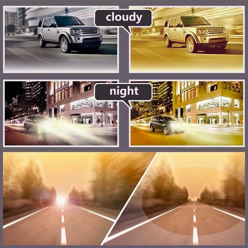 - Function: Reduce glare, add contrast to your vision and increase visual clarity when you drive at night, dusk or rainy day. Ensure driving safety on foggy or rainy days.