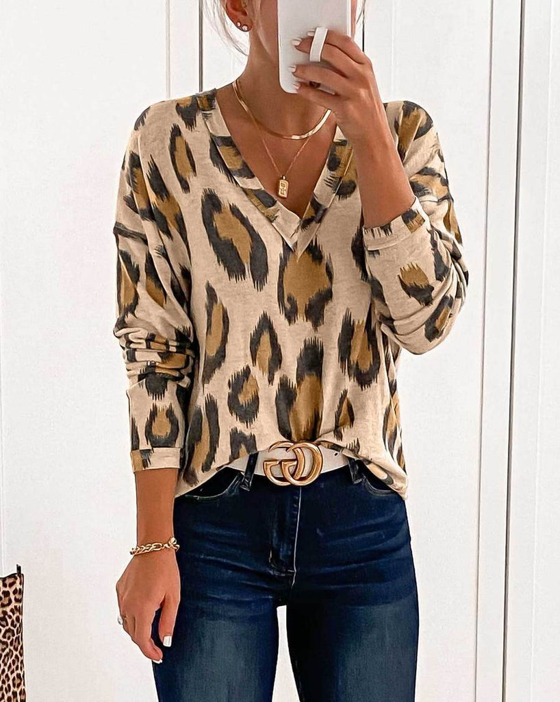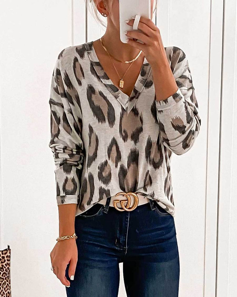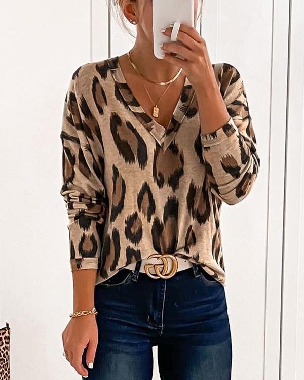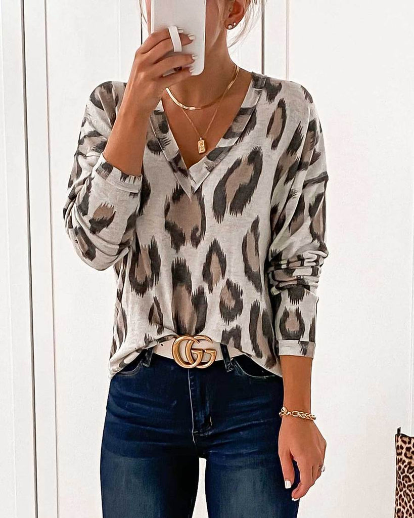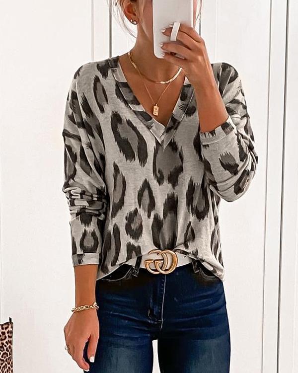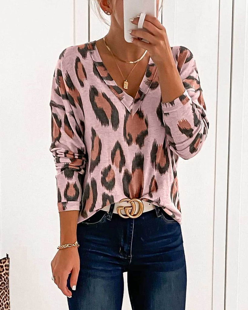 LEOPARD PRINT V NECK TOP (6 COLORS)