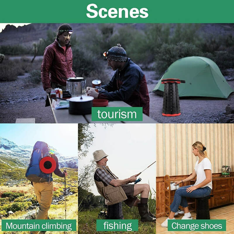 With high-strength heavy-duty eco-friendly Nylon PA6 material, the retractable folding stool has a strong bearing capacity and it can hold up to 573lbs/260kg, which will meet your needs effortless. Due to great technology and design, the durable telescopic stool has 110 tight connecting clasps and nonslip bottom, so you can use it safely.
