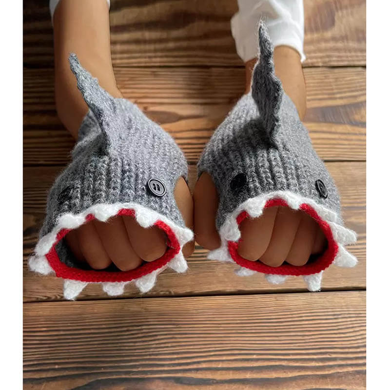 This is a great winter glove! The cute shark shape is playful, the tight knit material keeps your hands warm, and the half-finger gloves make your five fingers more flexible.